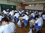 3年生は実力テストです。ひたすら問題に取り組んで頑張っています。