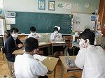今日の5・6校時、多目的室で、一中と二中の2年生による交流行事が行われました。