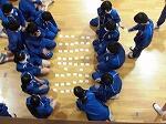 今度は各班の生徒が一列になっての「ジェスチャー伝言ゲーム」です。