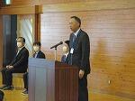 【花束贈呈の後、異動される先生方からご挨拶をいただきました】