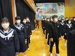 【卒業生入場】感染防止のため、全員マスクを付けての入場となりました。