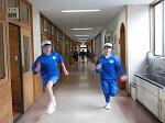 【女子ソフトテニス部】体育館2Fのキャットウォークを使ってのランニング。