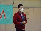 指導員の方からお話がありました。教室の生徒はオンラインで会の様子を見ていました。みんな立派な態度です。