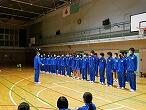 夕べのつどいです。係の生徒の進行で始まりました。緊張しているのかな?青少年交流の家の先生が温かい目で見守っています。一日掲げられていた国旗や所旗(赤城青少年交流の家の旗)を代表の生徒が降ろします。代表生徒が挨拶をしました。他の団体がいなかったので、青少年交流の家の先生に藤岡中を紹介しました。藤岡中のことをよく分かってもらえたかな?