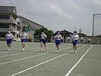 今日は朝から暑いけれど、2年生は新体力テストの種目を幾つか実施しています。今日はハンドボール投げと50m走を行っていました。