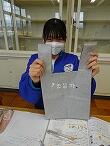 3組の家庭科の授業では、地域のアシストネットボランティアの方に御指導いただいたエコバッグがほぼ完成していました。まだ作業中の生徒もいましたが、あと少しで完成できそうです。仕上がった生徒にはエゴバッグを見せてもらいました。みんな嬉しそうに見せてくれました。一人一人個性が出ていて見ている方も楽しくなりました。