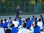 地震発生の連絡、机の下に避難、引き続き火災の発生、校庭への避難、という基本の形を確認するように、今回は訓練を行いました。出火場所は理科室、定められた避難経路でスムーズに避難ができていました。校舎の外に出て、集合場所まで走って行くときに、ちょっと話をした生徒がいたのが残念でした。