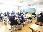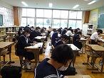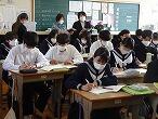 その後、3年生の教室を除くと、社会や数学の授業に取り組んでいました。あるクラスは自習だったため、各自問題集を出したり自学ノートを出したりして、一所懸命受験勉強をしていました。入試の過去問題を解いている生徒もいました。いよいよ年明けは私立高校の入試が始まるので、生徒も集中力を高めて取り組んでいます。健康管理に気を付けて、よい結果が出せることを祈っています。