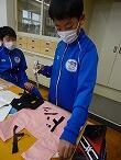 3組の家庭科の授業では、地域のアシストネットボランティアの方に御指導いただいたエコバッグがほぼ完成していました。まだ作業中の生徒もいましたが、あと少しで完成できそうです。仕上がった生徒にはエゴバッグを見せてもらいました。みんな嬉しそうに見せてくれました。一人一人個性が出ていて見ている方も楽しくなりました。