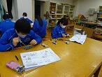 4組の技術はラジオ製作で基板に部品を付けるはんだづけに取り組んでいました。思わず、中学校時代を思い出しました。生徒は集中して作業を進めていました。完成したら、災害時にも使えるものなので、有効に活用してほしいと思いました。災害はない方がいいのですが。