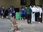 避難経路の密集を避けるために、避難経路の距離も学年や学級により異なりますので、時間だけで比較はできませんが、どの学年も迅速に避難できたと思います。本日のように、欠席や早退等の生徒が多い場合、避難より人員確認の方に時間がかかってしまいます。再度、人員確認の方法などについても検討し、今後も生徒が安全に学校生活を送れるようにしたいと思います。