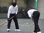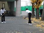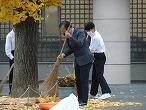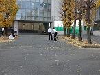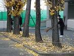 正門前で、落ち葉掃きをしながら朝の立哨指導をしていますと、そのリサイクル品回収をしていた男子生徒の何人かが銀杏の木の周りの落ち葉を掃いてくれました。お陰で、随分きれいになりました。落ち葉が積もっていると、雨の場合滑る恐れがあるので、いつもきれいにしておきたいところですが、後から後から降ってくる落ち葉相手では、人手がないとなかなかきれいにできません。そんなとき、今朝のように生徒が進んで落ち葉掃きをしてくれたのは助かりました。ありがとうございました。よい伝統となってほしいですね。