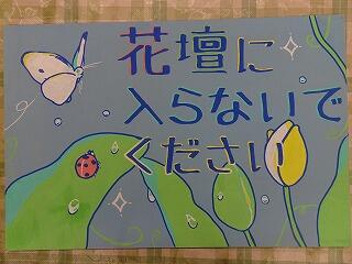 今度藤岡中学校にいらっしゃったら、正門の所のいちょうのある花壇をご覧ください。素敵な絵が飾られています。