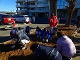 作業開始直後は戸惑っていた生徒もボランティアの方と作業を進めていくうちに、段取りが分かったようで手際よく作業を進めるようになりました。校舎の南側の花壇にもチューリップの球根を植えました。最後に生徒からお礼を述べて、一緒に記念撮影をしました。