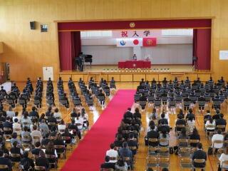 心配していた雨も上がり、暖かな春の日差しが降り注ぐ中、令和6年度の入学式が挙行されました。今年度は106名の生徒が本校に入学しました。新入生は堂々と入場し、担任による呼名に対し大きな声で返事をするなど、その姿に頼もしさを感じました。式では、学校長の式辞の後、生徒会長より新入生を迎える言葉があり、その後、新入生の代表による誓いの言葉が述べられました。
