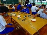2年生は技術の授業で、災害時に役立つライト付きラジオの製作をする時に必要になるはんだづけの練習をしていました。だめです。カメラではなく、手元をしっかり見ましょう。やけどしてしまいます。