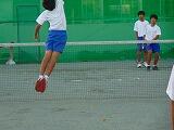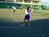 女子テニス部も個人戦で県大会に出場するペアがあります。フォームや打点を確認して、サーブ練習です。1年生大会も控えていて顧問の先生も熱心に指導しています。