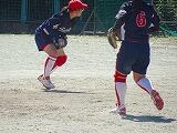 女子ソフトボール部も県大会出場です。ピッチングの練習に、キャッチャー役の生徒は足を怪我していながらも一所懸命取り組んでいます。みんな大きな声を出して気合いを入れています。