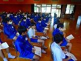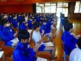 保健委員の生徒の司会進行で会は進めました。始めにアンケート調査に関する報告がありました。また、講師の先生に聞きたい質問を発表しました。講師の先生の質問に生徒は正直に挙手して反応していました。予定の時間をオーバーしてしまう講師の先生のお話に生徒は集中を切らさず耳を傾けていました。時間切れで生徒の質問に答えていただくことはできませんでした。残念。委員長さんがお礼を述べ、副委員長さんが閉会の言葉を述べて終了しました。
