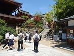 金閣を後にした1組の生徒は、学年写真を撮る清水寺に向かいました。舞台に出る前に、弁慶の履いたという鉄下駄と使っていた錫杖があったので、それを持ち上げようと頑張る生徒がたくさんいましたが、錫杖は持ち上げられなかったですね。その後は、地主神社に行くグループもあれば、音羽の滝で水を飲みに行ったグループもあり。お土産を買いに行くグループもあり。京都の最後の時間を楽しみました。