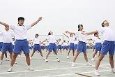 開会式の後は,種目ナンバー1番のラジオ体操。元気いっぱいの体育祭のスタートです。お手本を示す実行委員の生徒も一所懸命に、生徒の前に立ち、元気よくラジオ体操を見せていました。保護者の皆様からも素晴らしいラジオ体操だったとお褒めの言葉を頂きました。