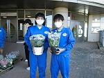 花を選ぶのも係の仕事。お気に入りの花鉢がgetできたようですね。