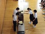 始業式の後は、第2学期学級委員の任命式と夏休み中に入賞のあった生徒の表彰式が行われました。
