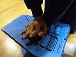 周囲の状況の確認から始まり、心臓マッサージ、人工呼吸の方法を学びました。