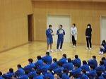最後に、挨拶の仕方を全校生徒で確認し、練習をしました。