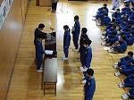 司会進行は「美化・緑化委員」の3年生の皆さんです。質問形式で、無言自問清掃の意義を確認しました。