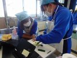 今回の授業は調理分野で、包丁の使い方を学ぶ授業でした。きゅうりを半月切りにすることで包丁を使う練習をしました。生徒はグループ内でペアをつくり、包丁を使っている様子を、互いにタブレットで撮影し合いました。
