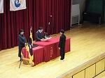 昨日準備した卒業式会場で、同窓会役員さんの司会進行の下、入会式がスタートしました。