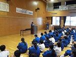 校長先生の挨拶の後、生徒指導主事の先生から「中学校の生活について」の話を聴きました。