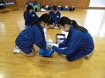 男女別々に分かれ、心臓マッサージやAEDの使い方を学びました。