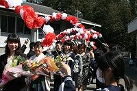 式後には、在校生が持った花のアーチと祝福の言葉の中を、卒業生が笑顔