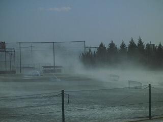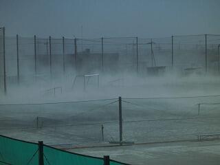 強風のため、テニスコートの表土も吹き飛んでしまいました。