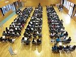 さて、今日の中学校説明会は学区内の小学校を中心に、隣接する小学校からも合わせて100名の6年生が参加しました。保護者の方と一緒に中学校生活の約束や行事、事務的なことなどの説明を受けました。