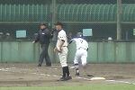 タイムリーで先制 合同チーム両校の横断幕 ベンチワークもきびきび