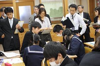 1年英語、2年体育、3年数学の授業を公開しましたが、生徒たちは意欲的に授業に取組、