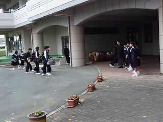 今、一中では、正門のいちょうがとてもきれいに色づいています。 そして、落葉が始まりました。