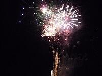 イベント・輪ゴム的当て フィナーレ・生徒会長あいさつ 一中の校庭に花火