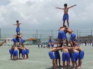 今週末(6/14)に実施される体育祭の成功を目指し、本日から生徒と担任相談による学級の朝練が始まりました。また、全体練習では、組み体操(男子)や白虎隊、ソーラン節(女子)の練習が実施されました。生徒は、とても意欲的に練習に取り組んでいます。