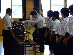 また、全校集会で、支部大会や地区大会で入賞した部・個人の表彰を行いました。どの部も意欲的に頑張っています。