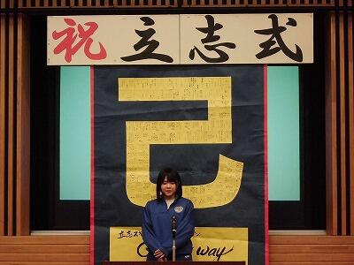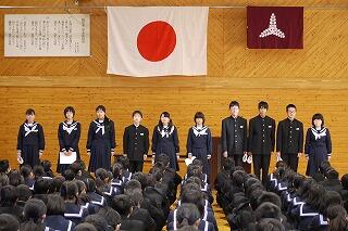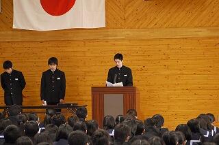 始業式・校長講話を熱心に聞く生徒      代表生徒による2学期の抱負      委員長任命式
