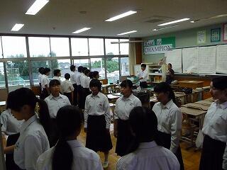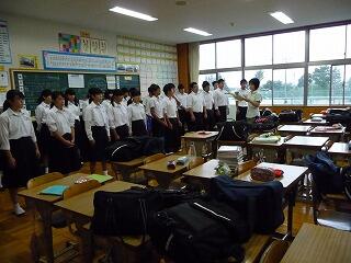 部活動・少年の主張等表彰式      朝の挨拶運動も再会             授業風景