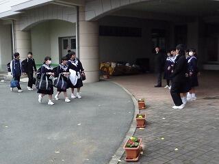 部活動ごとに朝のあいさつ運動を行っています。さわやかなあいさつが飛び交ってます。