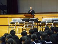 進路学習講演会では、(株)ブルーヒルズの 陳 賢徳 氏 による講話 「 生きる、働くとは何か 」 を