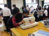 エコバッグの製作でミシンのかけ方などを補助していただきました。今日は、2年1組と2年3組の生徒がお世話になりました。ミシン掛けは小学校時代に学習したそうですが、始めは恐る恐るの作業で「すみませ~ん、助けてくださ~~い」という生徒の声もありましたが、ボランティアさんの丁寧な補助やアドバイスと優しい励ましのお陰で、授業の後半はミシンのかけ方がかなり上達していました。