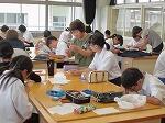 家庭科ボランティアの皆さんのおかげで、授業のねらいの達成度がかなり上がっているとのことでした。小学校からのつながりで、生徒たちも気兼ねなく質問できたり作品の完成度が上がったりしているようです。生徒、教師、そして地域がともに育っていく『共育』の現場となっていければと思います。