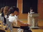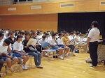 最初に各クラスで授業参観を行った後、多目的室に移動し、生徒と保護者が一緒に話を聞きました。